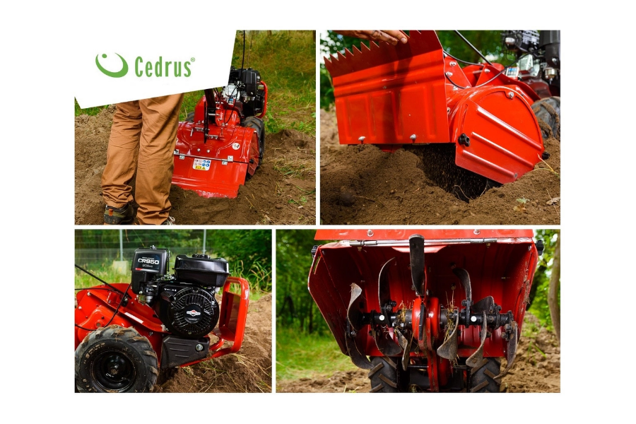 Glebogryzarka Cedrus GL03PRO to zasilana silnikiem spalinowym CR950 (pojemność silnika 208 cm3) marki Briggs&Stratton – glebogryzarka o mocy 6,5 KM z szerokością roboczą 45 cm. Cedrus GL03PRO posiada zbiornika paliwa 3,6 l oraz opcję napędu w dwóch kierunkach (naprzód oraz do tyłu), dzięki czemu pozwala na sprawną pracę i komfortową pracę na powierzchniach nawet do 2500 m2.